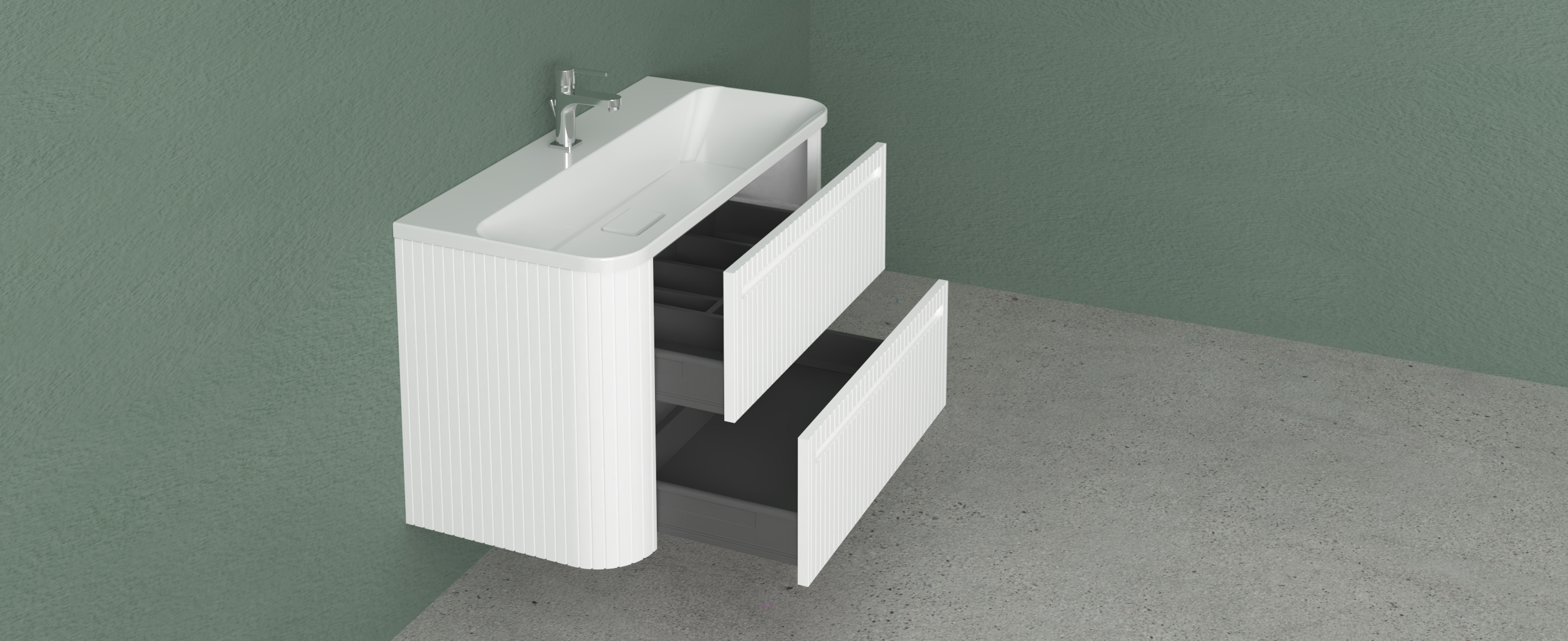 Die Möbelserie gloria 2.0 verbindet abgerundete Formen, die an die frühe Moderne erinnern, mit einer modernen, minimalistischen Form.