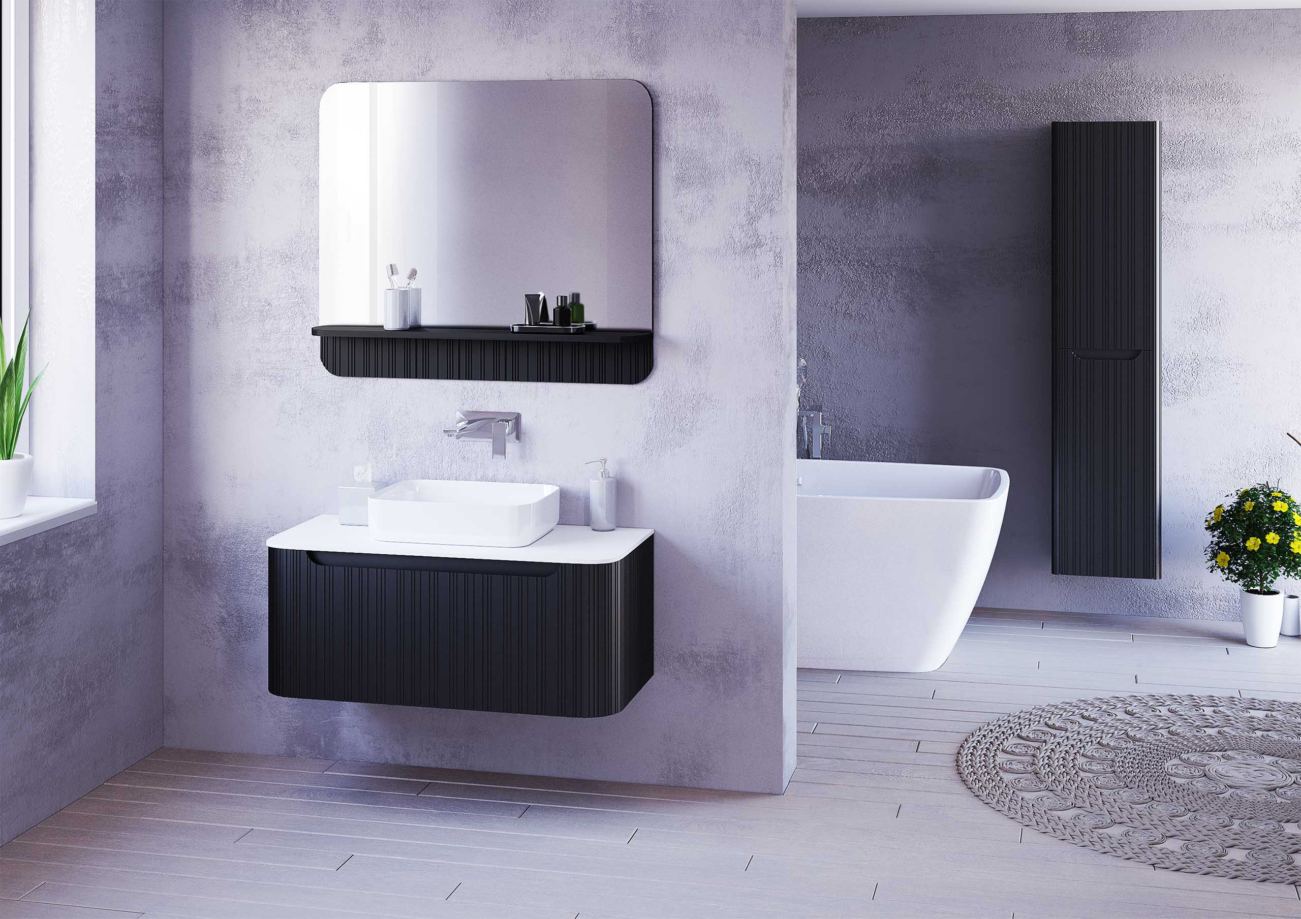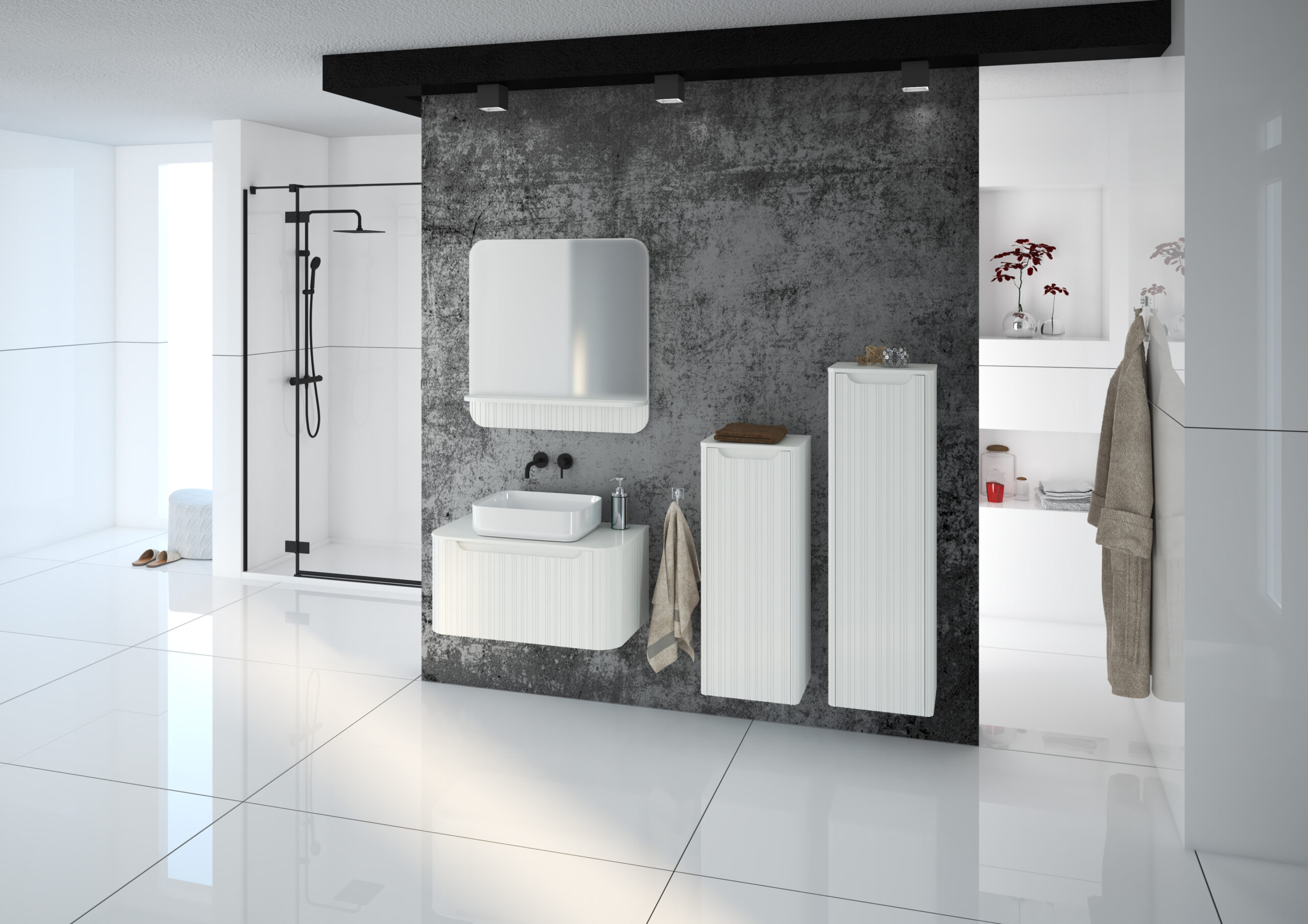 Gloria Style to siostrzana kolekcja linii Gloria 2.0, która łączy zaokrąglone formy inspirowane wczesnym modernizmem z nieregularnym ryflowaniem frontów, wprowadzając subtelną lekkość i delikatność do nowoczesnych łazienek. Meble z nablatową umywalką nadają całości elegancji, a wysokiej jakości materiały wykończeniowe podkreślają luksusowy charakter tej kolekcji. Gloria Style w pełni wpisuje się w najnowsze trendy, oferując kolekcję, która łączy minimalistyczny design z ciepłymi, ale i eleganckimi akcentami. Dostępne kolory – od głębokiej czerni, przez intensywny burgund, aż po subtelną biel – idealnie komponują się z nowoczesnymi aranżacjami wnętrz. Dzięki temu Gloria Style przypadnie do gustu osobom, które pragną stworzyć w swojej łazience przestrzeń pełną stylu i wyrafinowania, przy jednoczesnym zachowaniu funkcjonalności i klasyki designu.
