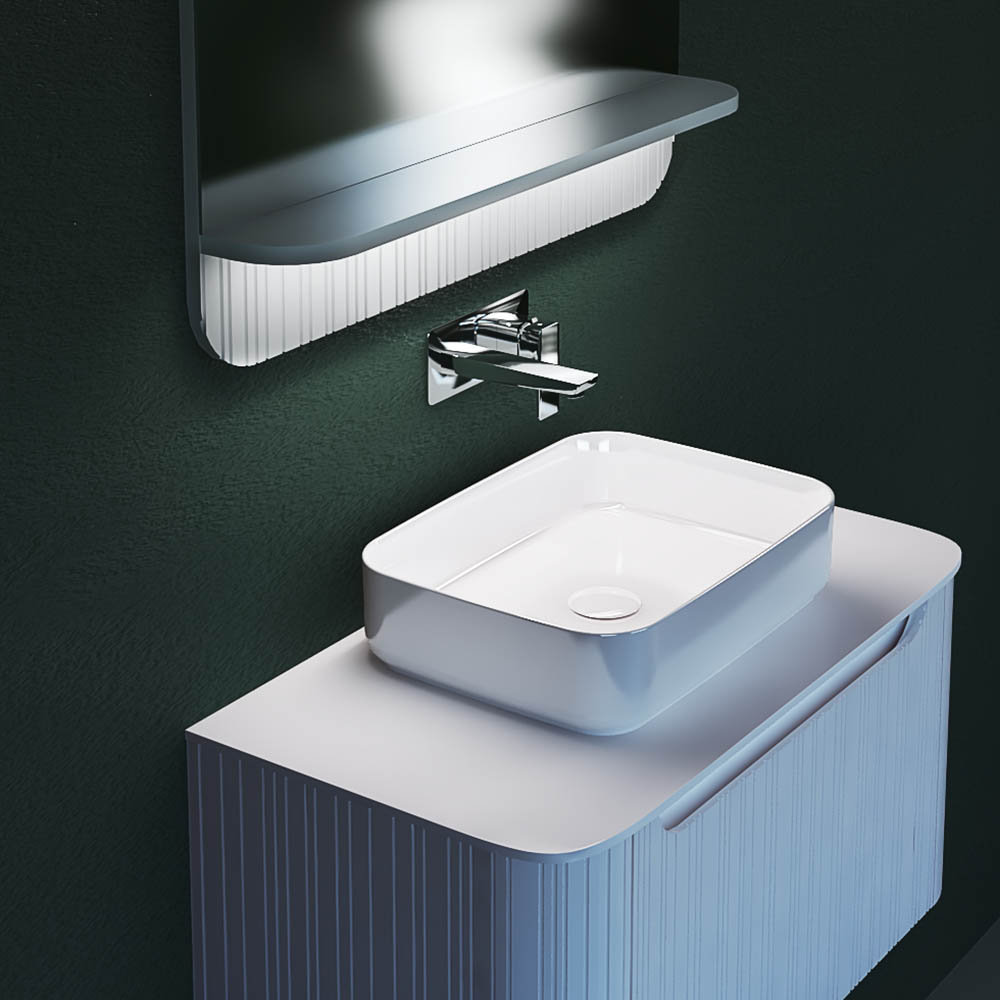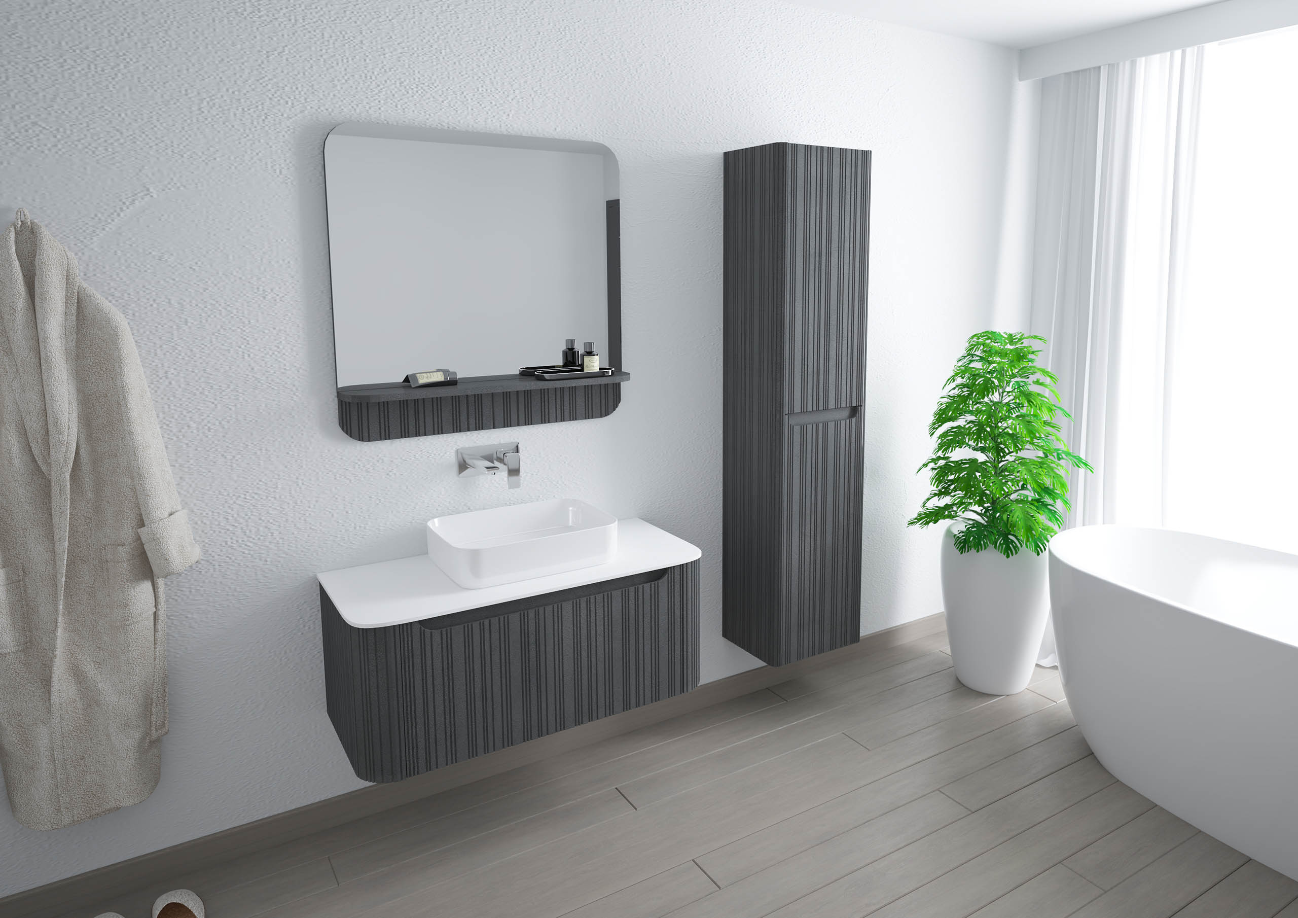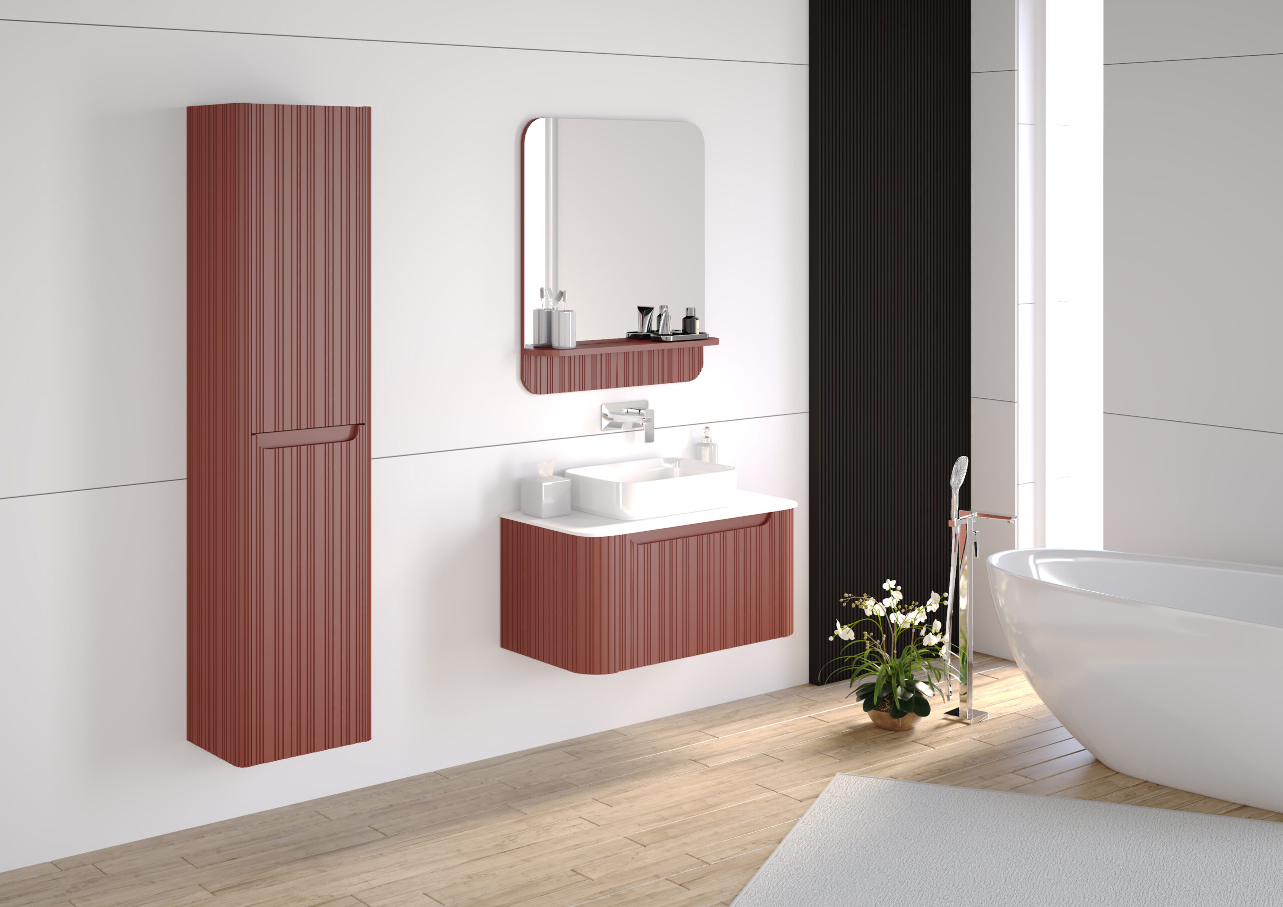 In dieser Version sind sie jedoch unregelmäßig, was der gesamten Kollektion eine zarte und subtile Leichtigkeit verleiht. Der Schrank mit Aufsatzwaschtisch verleiht der gesamten Linie Eleganz, die durch die hochwertigen Materialien noch unterstrichen wird.