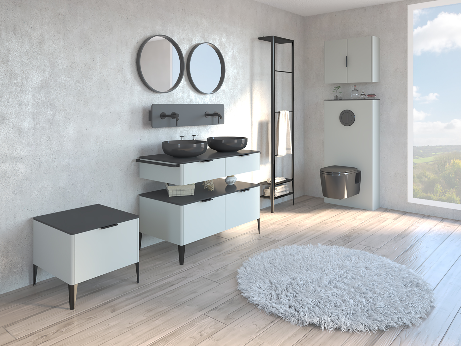 Three colour versions allow the collection to be used to furnish bathrooms in different styles and arrangements.